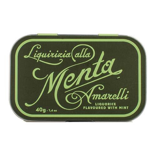Liquirizia alla Menta Amarelli Liquirizia aromatizzata con menta naturale dalla forma lievemente appiattita.
