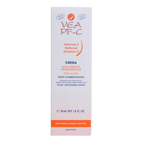 Il colore beige di VEA PF-C è dato dai polifenoli e dalla vitamina E. Si raccomanda di fare assorbire completamente il prodotto dalla pelle per evitare il contatto della crema con gli indumenti chiari.